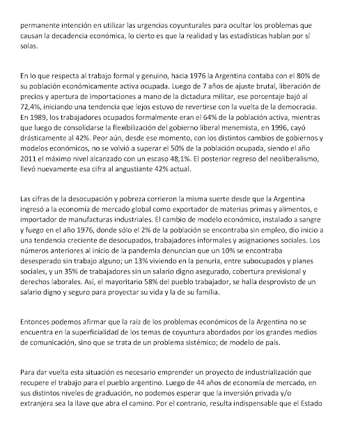 2. impecable el enfoque sobre nuestra triste e injusta realidad. Solo falta la decisión de revertirla, que seguramente no va ser fácil, con nuestra dirigencia empresarial y "campesina" dados a la especulación, después de décadas apostando a la timba financiera.